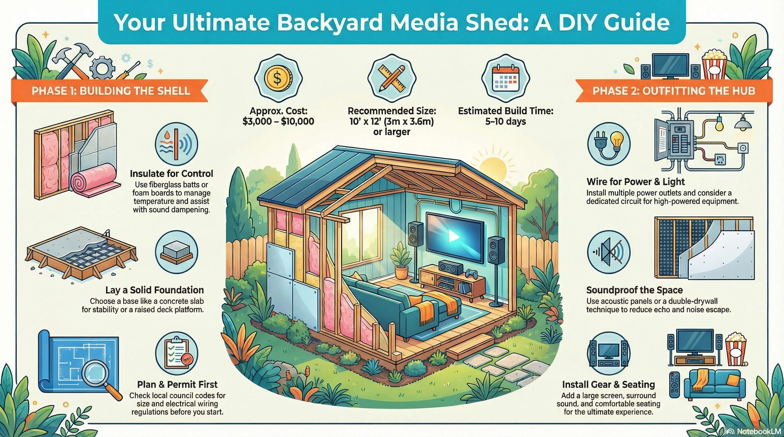 transforming a basic shed into a multimedia haven, you can enjoy movies, music, and sports with